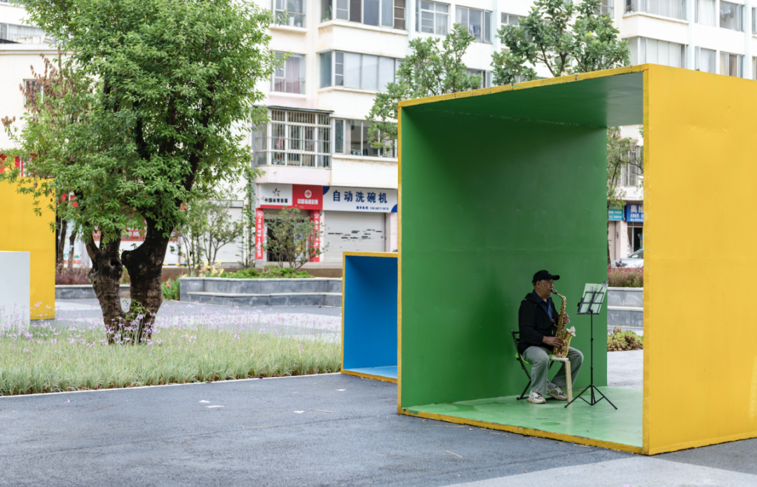 市民在广福小游园内吹萨克斯。 新华社